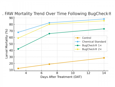 This study presents a comprehensive field bioefficacy evaluation of BugCheck®, a microbial-based biopesticide designed to control Fall Armyworm (FAW), *Spodoptera frugiperda*, in corn under Philippine field conditions. BugCheck® combines entomopathogenic fungi and bacteria (*Beauveria...